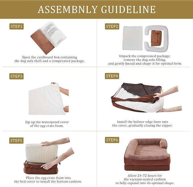 Bedfolks Orthopedic Dog Bed XL, Waterproof Dog Sofa Bed for Extra Large Dogs, Egg Foam Pet Couch Bed with Removable Washable Cover and Nonslip Bottom, Brown