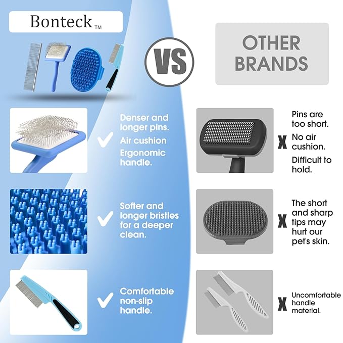 - ALL-IN-ONE DOG GROOMING SET: Elevate your pet care routine with our top-tier Dog Brush Grooming Kit. This comprehensive four-piece set includes a superior dog grooming brush, a durable metal comb, a soothing bath brush, and an effective flea comb. Ideal for all medium to long haired breeds, ensuring a meticulous grooming experience.