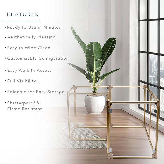- MODERN & DURABLE DESIGN – Crafted with clear panels and sturdy rods, this dog fence blends seamlessly into any home. The durable materials ensure long-lasting use, making it a stylish yet functional indoor dog pen.