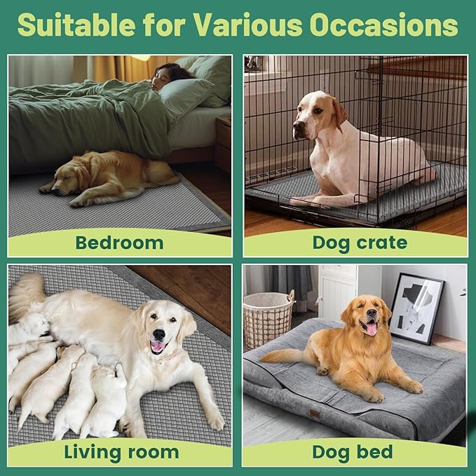 - 31x47 Inch Extra-Large Size, Wide Coverage: Suitable for dogs of all ages and breeds, this extra-large pee pad provides excellent protection for floors, carpets, beds, and furniture. Ideal for potty training, senior or sick pets, pet travel crates, trays, and various other scenarios, it can also be used to prevent spills from water and food bowls.
