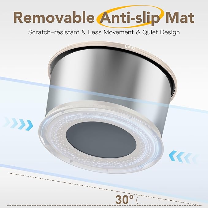 - Anti-slip and Spill-proof Design: Pet slow drinking water bowl has wider fixing border and silicone mat, together with the floating disk can effectively prevent splashing and stop wetting the floor, the anti-slip mat on the bottom of the stainless steel dog bowl can keep the bowl fixed in place and won't scratch your floor, also prevent your dog from slipping and pushing the bowl when drinking. Note: The anti-slip mat is designed separately to facilitate daily cleaning