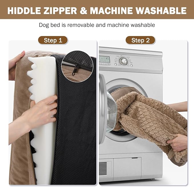 - 🐶WATERPROOF & WASHABLE DOG BED: The dog bed features a removable, machine-washable cover with a zipper for easy to quick remove and care, so just throw it in the washing machine and will be as good as new, ensuring your pet's space stays fresh and hygienic. The waterproof inner lining fully protect the foam from spills, water damage, or accidents, prolonging the product's life.