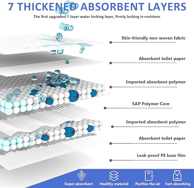 - 【7-Layers Leak-Proof Design】The first 7-layer thicker puppy pads pet training pads, with a more absorbent, perforated non-woven surface with a diamond quilted design that ensures liquids flow in the right direction, speeding up the passage of liquids through the surface and keeping the surface fast-absorbing liquids.