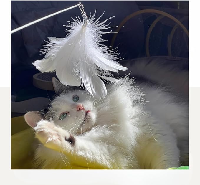 - Interactive Play to Unlock Natural Instincts. This feather wand toy set encourages jumping, chasing, and pouncing—perfect for indoor cats who need stimulation and exercise