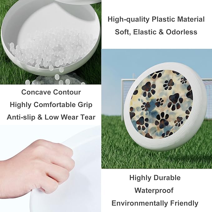 - 2.Material: This Dog Paws Ultimate Disc is made of polyethylene which is a high-end plastic that has excellent grip for consistent throws and not easily damaged when hitting walls or concrete floors
