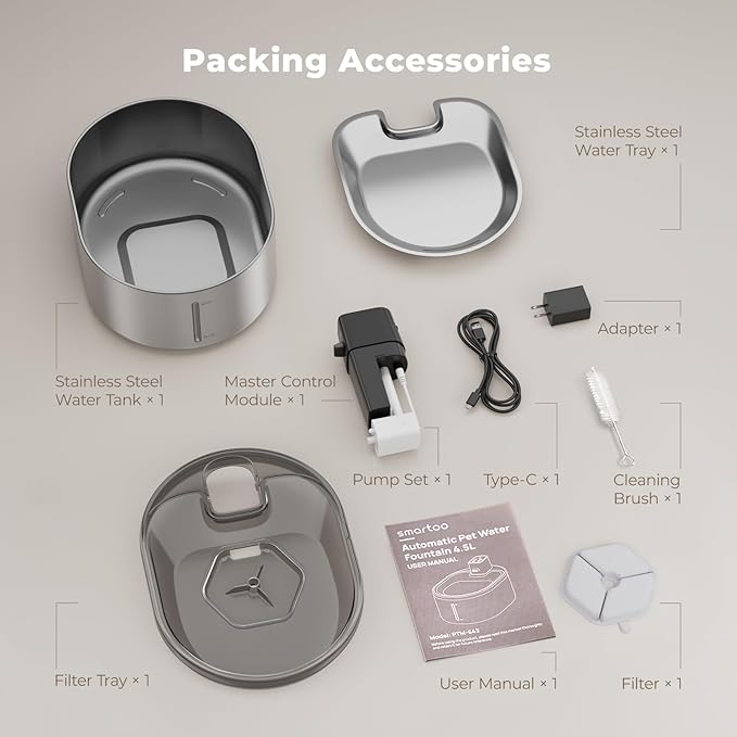 - 【Exceptional Battery Life】 The Smartoo battery operated cat water fountain is powered by a built-in 4000mAh rechargeable battery, which can provide fresh, clean water for up to 60 days on a full charge. Even during power outages, it ensures your pet stays hydrated with ample water supply.
