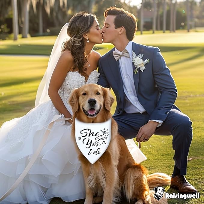 - 【Versatile Pet Accessories】:Multi-use triangle dog wedding bandanas shield from drool and keep fur clean. Ideal for daily wear, dog wedding outfit, engagement photo props, engagement party decorations, or wedding accessories. Let your pet shine on any day. Plus, there are cool bridal shower gifts for newly engaged couples.