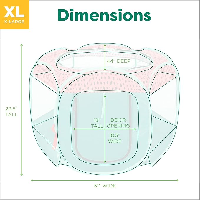 Furhaven Portable Dog Playpen Cat Tent, Pet Playground/Kennel Foldable Indoor Outdoor Zippered Puppy Crate - Green & Pink, Extra Large