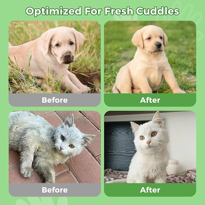 - 【Rinse-Free Dog Bath Wipes】Our no-rinse pet bathing wipes will revolutionize your pet's grooming routine, making it easier than ever before, perfect for daily use, outdoor activity, traveling, and pets in some special circumstances.
