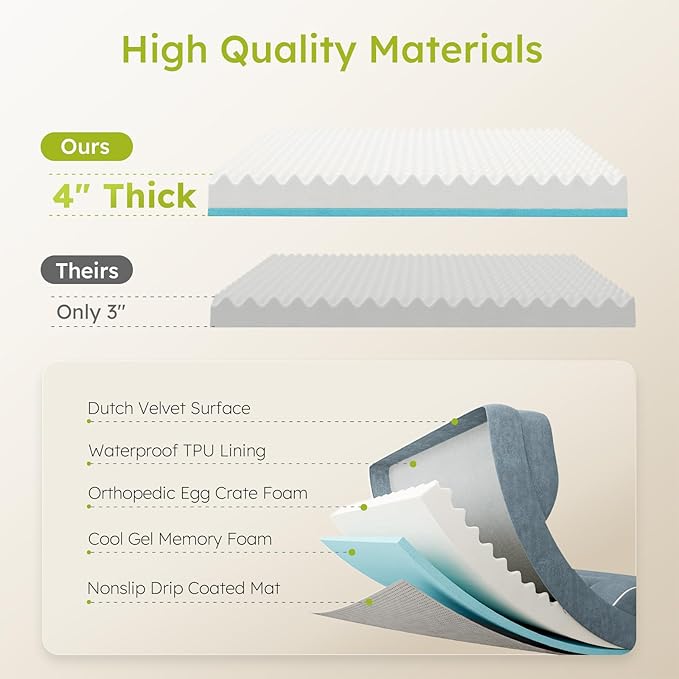 - Orthopedic Support:CWAWZ's big dog bed is filled with a 4" thick layer of high density orthopedic foam to cushion dog's joints and provide optimal support as they sleep, especially suitable for older dogs with anxiety and large dogs with arthritis