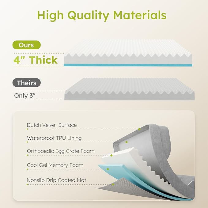 - Orthopedic Support:CWAWZ's big dog bed is filled with a 4" thick layer of high density orthopedic foam to cushion dog's joints and provide optimal support as they sleep, especially suitable for older dogs with anxiety and large dogs with arthritis