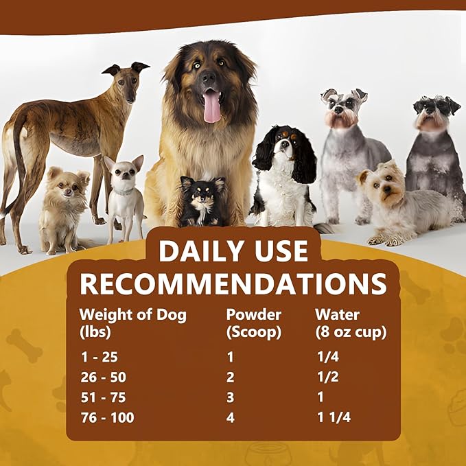 - Fast & Easy: Beef bone broth powder can be consumed both dry or wet, provides a quick and convenient way to enhance your dogโs diet. Simply mix into food or stir into warm water! Your pet will love it!
