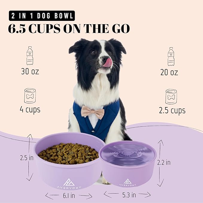 AVERYDAY 50 Oz Travel Dog Bowls with Lids, 2-in-1 Portable Pet Bowls for Food and Water, Leakproof Travel Dog Food & Water Bowl for Outdoor, Camping, Travel Dog Feeding Bowl, Daycare Pet Bowls