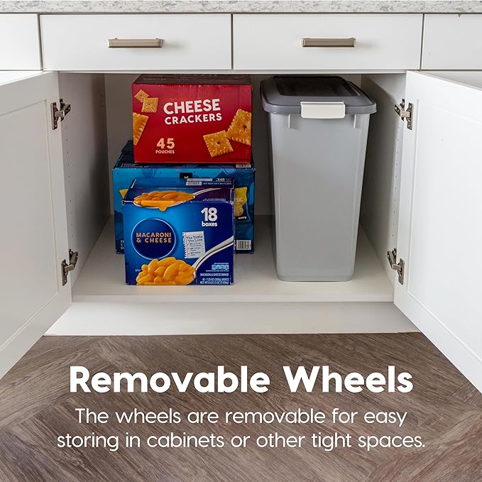 - EASY MOBILITY: Includes attachable wheels, allowing you to move the storage bin effortlessly. Place it on a shelf or roll it from the storage area to your pet's bowl for added convenience.