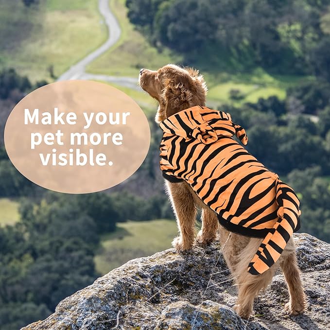 - Dog tiger costume is a warm and beautiful, the collar and chest is very loose, suitable for Halloween, everyday wear, photo shoots, fall and winter hoodies, Animals.