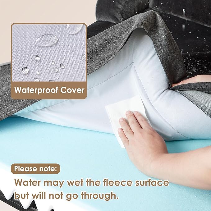 - WATERPROOF FILM and NON-SLIP BOTTOM: There is a waterproof film between the fleece surface and the bottom fabric that makes the dog bed waterproof. However, the faux linen on the side is not waterproof. A non-slip point on the bottom is not easy to slide, and keeps your dog bed steady.