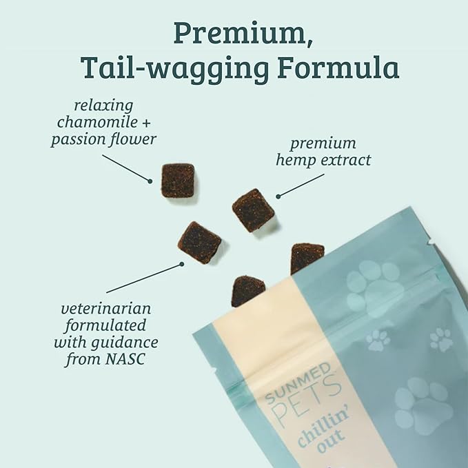 Sunmed Chillin' Out Hemp Dog Chews with Chamomile & L-Tryptophan – Stress Relief, Calming & Relaxation for Dogs – Helps with Anxiety & Stressful Situations – 40 Count