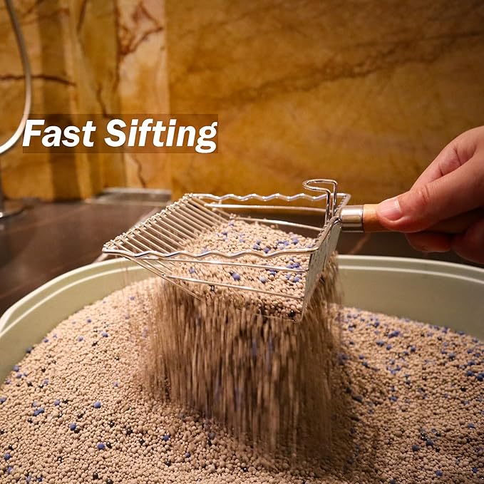 Cat Litter Scoop, Kitty Litter Scooper Metal, Deep Shovel, Wood Handle, Litter Box Fast Sifting for Cats and Kittens