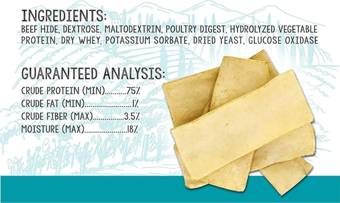 - PREMIUM, COLLAGEN RICH CHICKEN-FLAVORED BEEFHIDE: Tasty chicken-flavored Real Hide Enzyme Enriched Dental Chews are made using quality, premium beef hide.