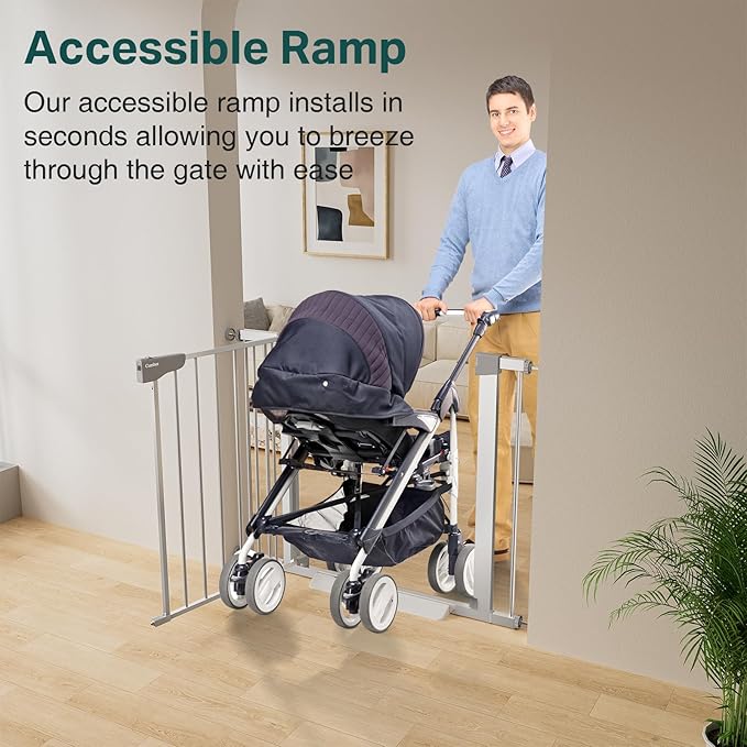 Cumbor 29.7-40.6" Baby Gate for Stairs, Mom's Choice Awards Winner-Dog Gate for Doorways, Pressure Mounted Self Closing Pet Gates for Dogs Indoor, Safety Child Gate with Easy Walk Thru Door, Silver
