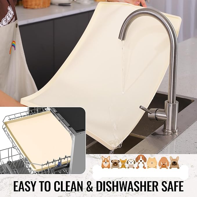 - Easy to Clean & Dishwasher Safe: Our dog bowl mats for food and water, food mat for cat bowls and dog matt for food and water bowl are top-racked dishwasher safe. Wipe pet feeding mats for dog bowls, pet water mat for dog bowl with a wet cloth and then rinse them in the sink with warm soapy water is another way to clean. If there is much water spilled on the pet matt for food and water, please kindly wipe with a dry towel first to avoid water spilling when you take up the dog water mat