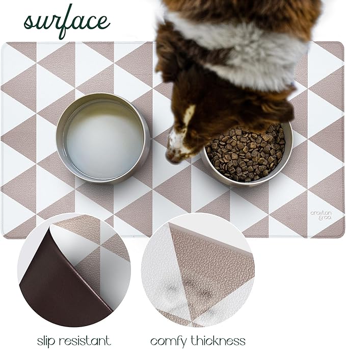 CROXTON & CO. Dog Food Mat | Non-Slip Faux Leather Pet Feeding Mat for Bowls | Large Dog Bowl Mat for Food and Water | Durable, Easy-to-Clean Pet Food Mat for Floors | Size: 12"x18"
