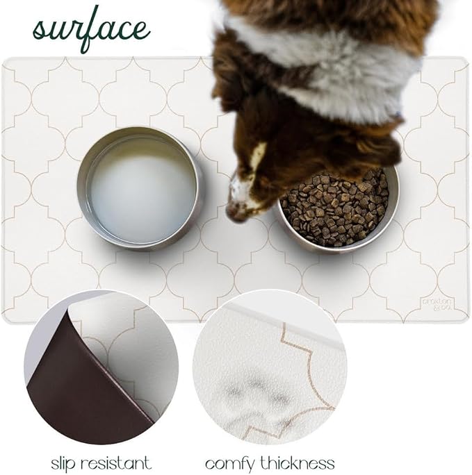 - ❤️ ELEVATES YOUR HOME & KEEPS PETS HAPPY - This stylish dog food mat compliments your décor, unlike traditional pet-themed designs. It's perfect for keeping your floors clean and your furry friend comfortable during mealtime.