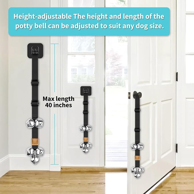 - NEW DESIGN - Each pack of dog doorbell come with a double side tape, dog training doorbell can be placed at any height on the door or the wall, offering more flexibility than the type that can only be hung on the doorknob. Plus, the double-sided tape can be removed without leaving any residue or damaging the surface.