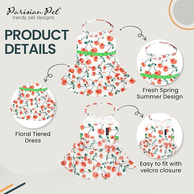 Parisian Pet Boho Dog Dress - Red Poppies Summer Clothes - Velcro Closure Girl Dog Dress - Lightweight, Cotton - Medium, Dressy Outfit - Beach Outfit