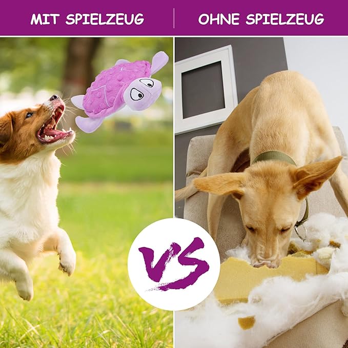 Squeaky Sea Turtle Plush Dog Toy - Durable, No Stuffing, Interactive Chew Toy for Small Dogs - Relieve Anxiety, Teething, and Keep Them Busy for Puppy(Purple)