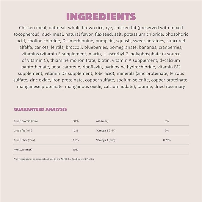 Meadow Roast, Dry Cat Food, Chicken Meal and Duck Meal Adult Recipe with Grains, 12 lb Bag