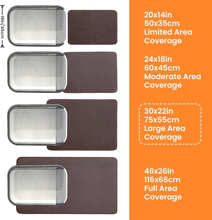 - Excellent Cat Mat for Litter Box: Measuring 30x22 inches, this brown cat litter pad is designed to catch every stray piece of litter from your cat's paws and the floor. Place it in front of or under the litter box — it's up to you. Keep your home clean and tidy with less daily sweeping and no lingering odors. Enjoy a fresher space and more free time for yourself!