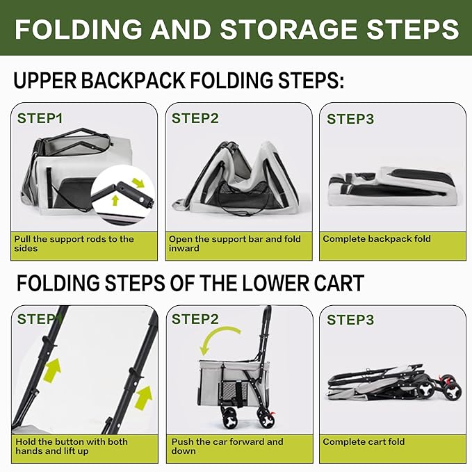 - 3 different ways to carry - Handle Pet Carrier Bag / Pet Carrier Backpack / Travel Stroller,Our carrier seamlessly converts into a backpack, wheeled carrier, car seat, and pet bed, so you can bring your dog or cat just about anywhere. 3 Pockets provide room for store. Pockets on both sides, one side is bottle pocket and the Dog Poop Bag Holder , other side is zipper pocket for you put any dog snacks, toys and other essential supplies. One zipper bag is inside in backpakck.