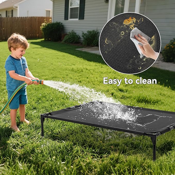 - 【Durable & Washable Material】: Constructed with a durable Teslin fabric supported by robust nylon straps, our raised dog bed is designed for longevity. It offers excellent ventilation, facilitating easy maintenance while resisting wear from sagging and chewing, ensuring a clean, comfortable bed for your dog.