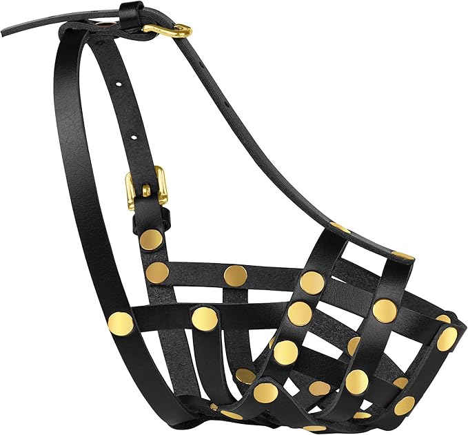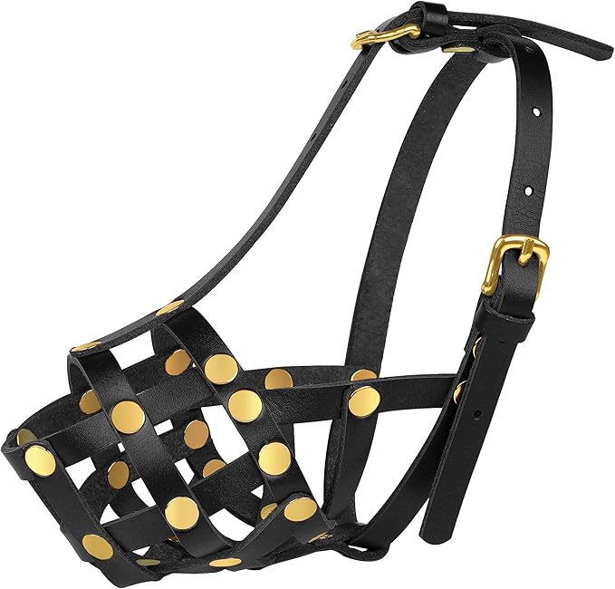 - Materials: Crafted from premium genuine leather with stainless-steel rivets, our cage muzzle ensures safety and durability for small and medium dogs. The adjustable leather straps provide a secure, comfortable fit, preventing slipping during use.