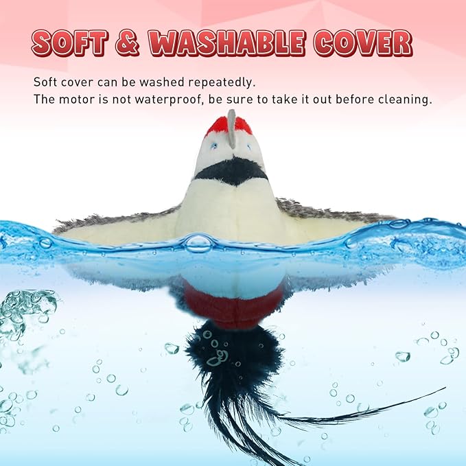 - Realistic Modeling: The lifelike flapping woodpecker toy looks like a real bird and easily catches the cat's eye. The fluff is soft and non-fading, your kitty will love it and interact with it in real time. Relieve boredom and loneliness, reject laziness, and increase exercise