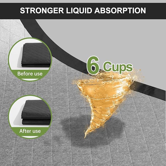 - Quick Dry: Made with high-grade super absorbent polymer core(SAP), these training pads instantly absorb fast and turn urine into gel, keeping the surface dry. The quick-drying surface keeps your pet feeling comfortable and warm all day. Dry paws do not leave a huge mess on floors or carpets, no more wet footprints on the ground or wall.
