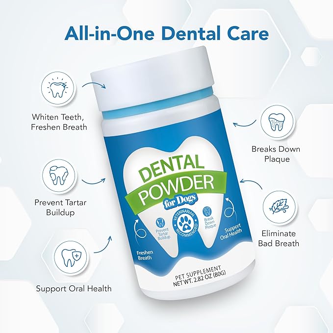 Dental Powder for Dogs - Plaque Control & Tartar Remover, Breath Freshener with Probiotics, Vitamins & Natural Extracts - Perio Support Powder for Dogs, 2.82 oz (80g)