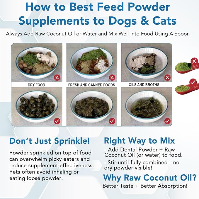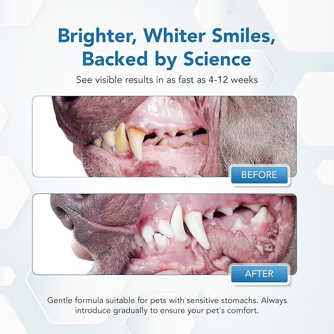 - Daily Use Convenience: Simply sprinkle the powder on your pet’s food daily for a seamless addition to their routine. Suitable for all breeds, ages, and sizes, it provides comprehensive oral care with visible results in 4-12 weeks.