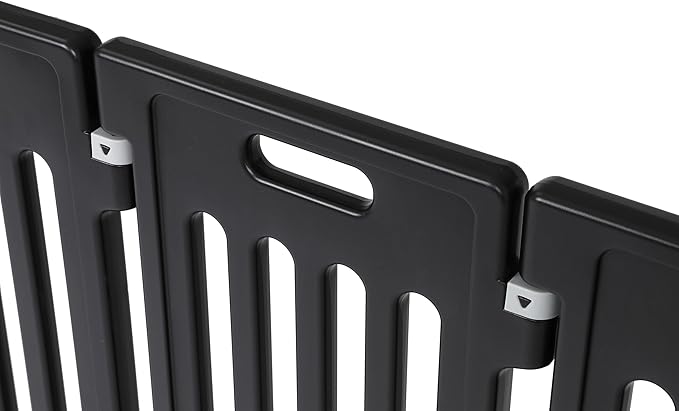 - DIMENSIONS AND MATERIALS: Standing at 25.6 inches high, the playpen is made of strong, durable plastic. The 12-panel design offers ample space for pets to play, while the neutral black color blends seamlessly with any home décor. Ideal for small to medium pets.