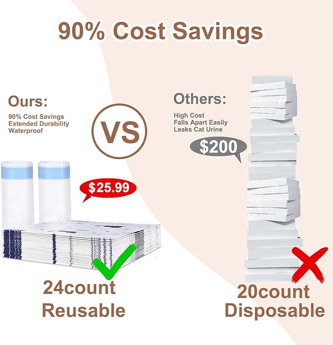 - Cost-Effective & Hassle-Free: Extend the life of cat litter trays with durable liners and protective cardboard. Replacing only the liner bag and cardboard reduces costs, reduces scrubbing, prevents unpleasant odors, and protects disposable crystal litter trays from urine damage—no leaks, no collapse.