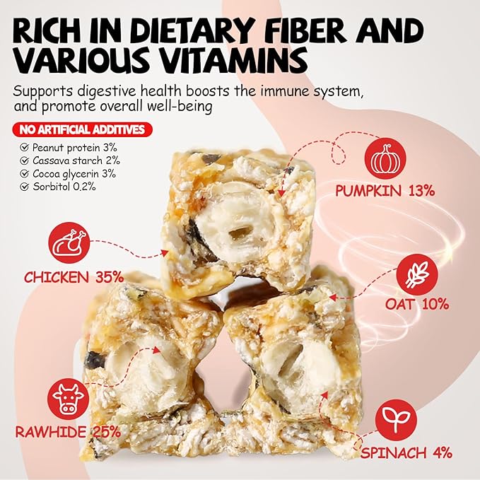ASMPET Dog Treats Chews, Chicken Wrapped Rawhide Sticks with Superfood Pumpkin Oats and Spinach 10.6 oz