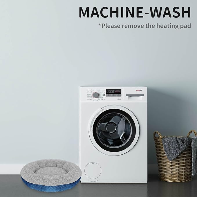 - 【VALUE PACK】--Include:1pack cat heating pad & 1pack super soft round bed .Cat and dog beds feature nest-like walls to promote feelings of security,round pet bed offers a safe, cozy place for a cat or small dog to snooze in winter.