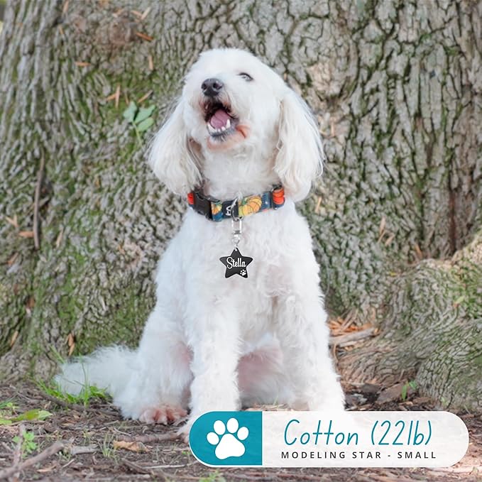 Ultra Joys Dog Tags Personalized for Pets - Hollow Paw Custom Pet ID Tag - Engraved Dog Tag for Small, Large Dogs - Large Star in Black