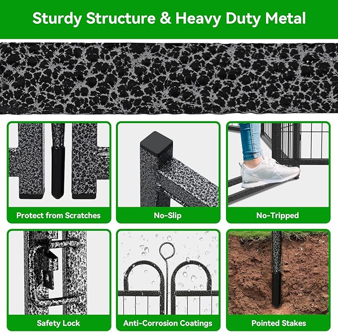 - 【Sturdy Structure & Stable Ground Stakes】Kfvigoho metal stakes are designed round top, which can be pounded into the ground for greater stability, this dog fence with sturdy structure, so dogs can't knock it down and keep them confined in a safe area, the pet pen works great for small, medium and large dogs and rabbits, ducks, turtles etc