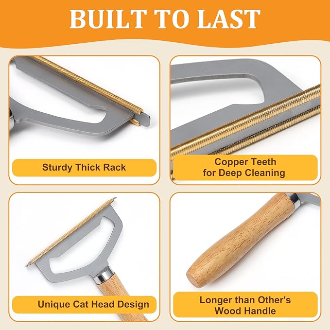 - Built to Last: Unlike flimsy alternatives, our pet hair remover features a robust steel plate(1 buck thick), an exclusive cat design, and longer than others ergonomic handle. The unique round edge design removes animal fur, lint, pills without damaging the fabric. This combination ensures durability, making it a long-term unmatched solution for pet hair woes.