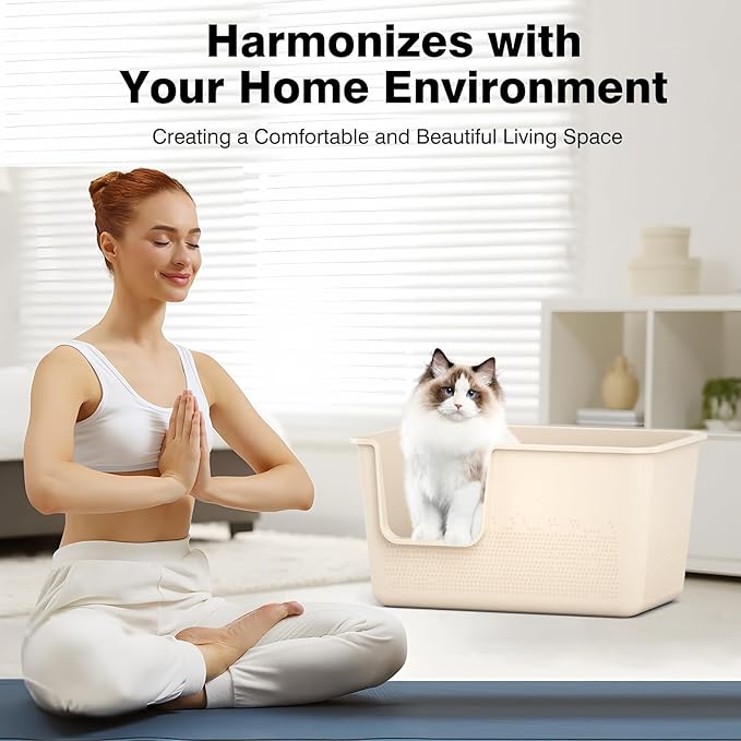 - 【High Sided for Cleanliness】 The High Sided Litter Box design helps keep litter inside, reducing mess and making maintenance easier. Ideal for Cat Boxes for Indoor Cats, ensuring a clean and hygienic living space.