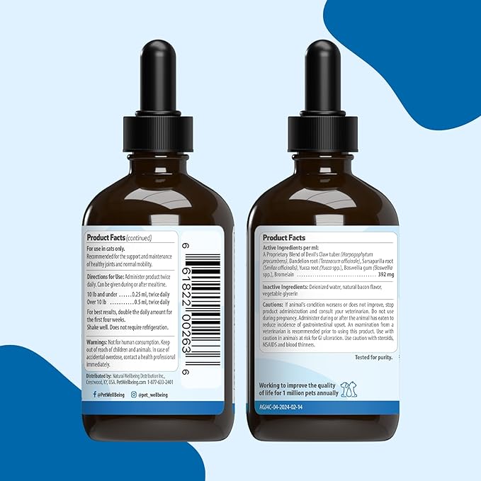 Pet Wellbeing Agile Joints for Cats - Veterinarian-Formulated - Hip and Joint Health, Mobility, Devil’s Claw, Boswellia, Joint Ligament and Cartilage - Herbal Supplement 4 oz (118 ml)