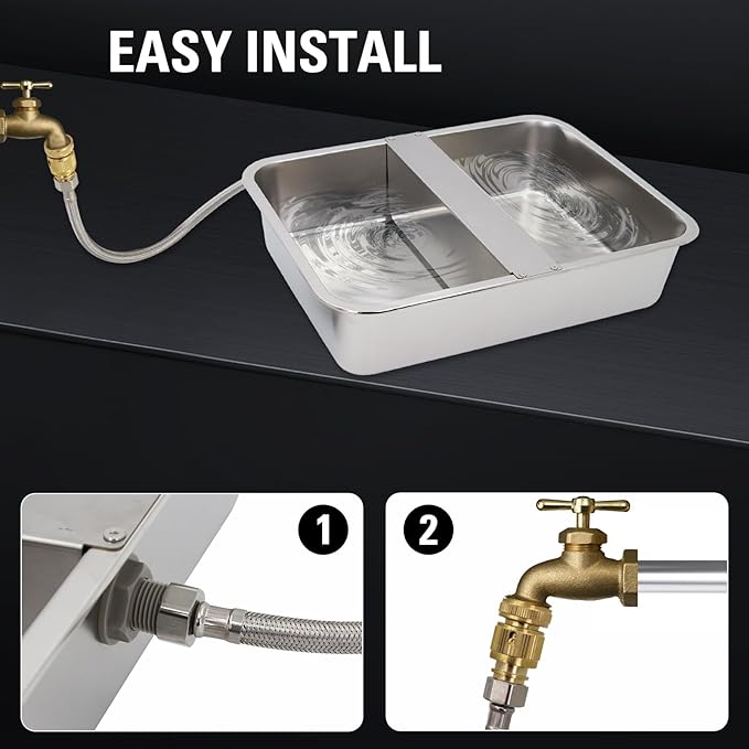 - -Large outdoor dog water bowl: Our automatic drinking bowl can hold up to about 15 liters (4 gallons) of water and can accommodate two or more large dogs drinking water at the same time. suitable for various animals such as large dogs, chickens, ducks, geese, horses, cows, goats, and pigs, meeting their daily hydration needs. Compared to regular drinking bowls, it has a larger capacity and improved water-saving efficiency.