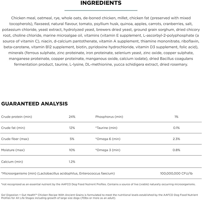 Go! Solutions Digestion + Gut Health, Dry Dog Food, Chicken Recipe with Ancient Grains, 22 lb Bag
